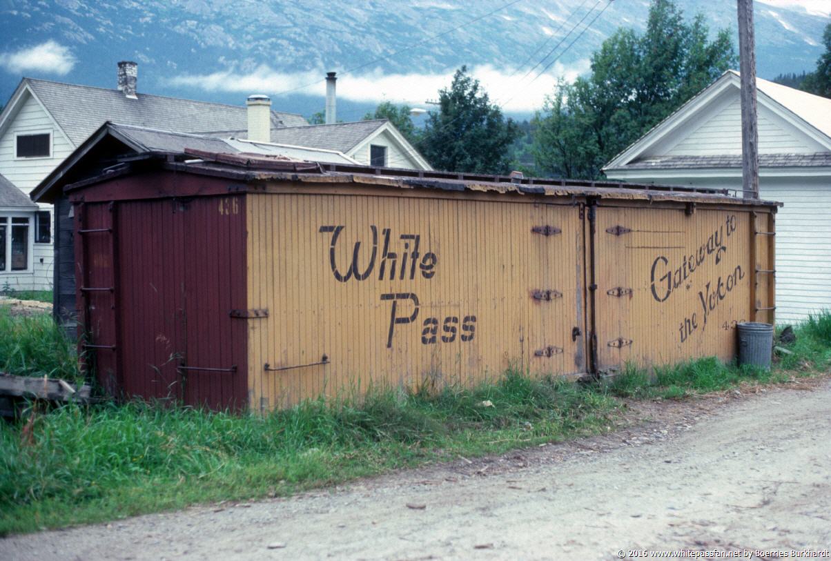 Refer 768, ex. C&S box car at Skagway between 2nd and 3rd Street in June 2006, destroyed in 2007 and gone forever.