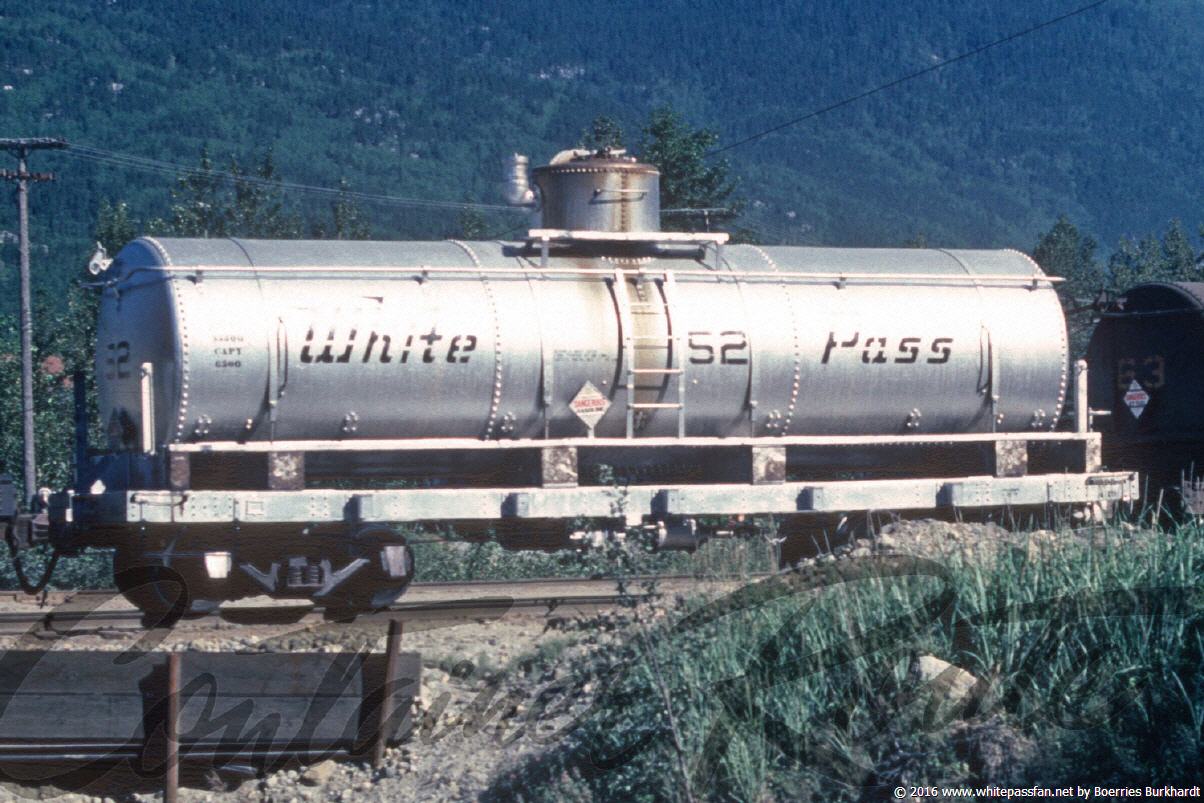 The former UTLX tank is mount on a Pullmann steel frame from a former flat car. Skagway 1979. COllection of Boerries Burkhardt